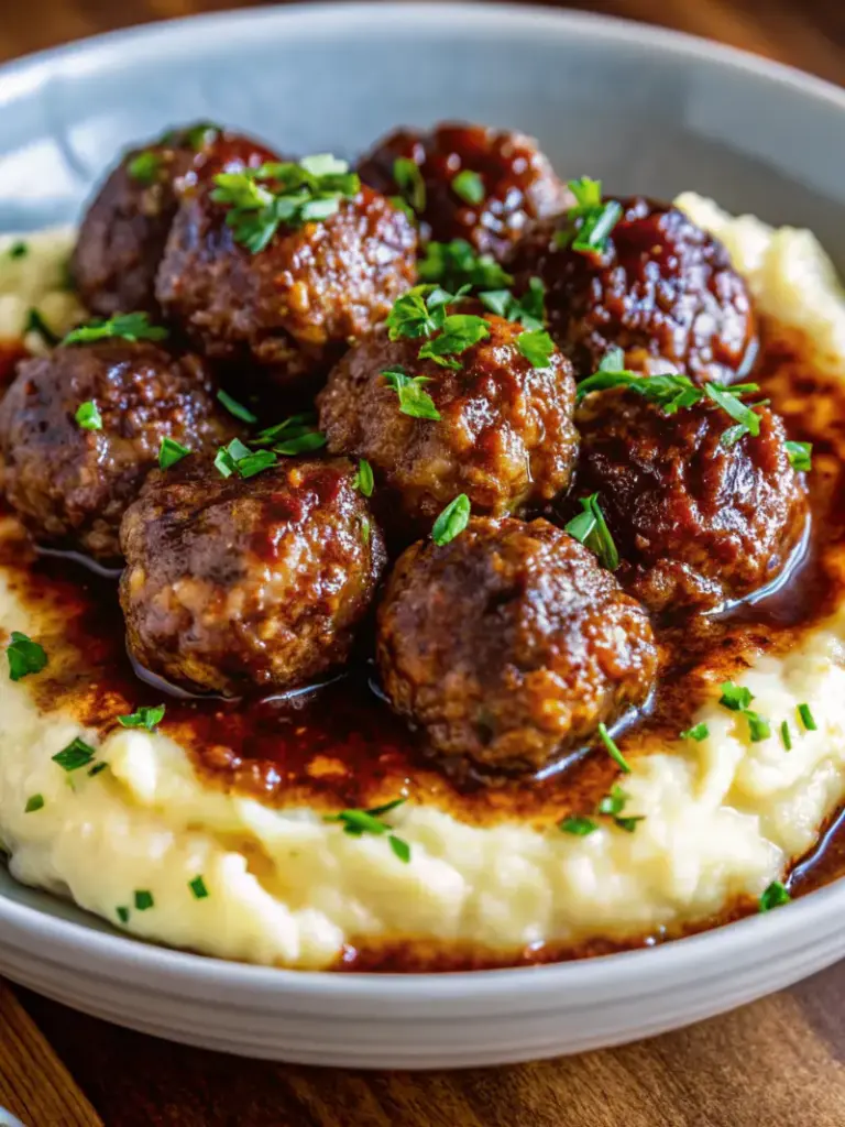 This Salisbury Steak Meatballs With Garlic Herb Mashed Potatoes Recipe delivers restaurant-quality comfort in under an hour. With tender meatballs, rich mushroom gravy, and creamy garlic potatoes, it’s perfect for weeknights or special occasions. Try it tonight and transform your dinner routine—then share your experience in the comments below or subscribe for more delicious recipes!