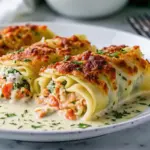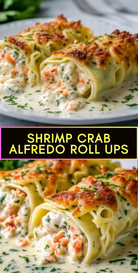 Shrimp Crab Alfredo Roll Ups deliver creamy seafood pasta magic in 55 minutes: juicy shrimp, crab filling, homemade Alfredo, baked to bubbly bliss. Perfect for shrimp recipes fans seeking easy, indulgent dinners. Try it tonight, share your tweaks in comments or reviews below, and subscribe for more seafood hits!