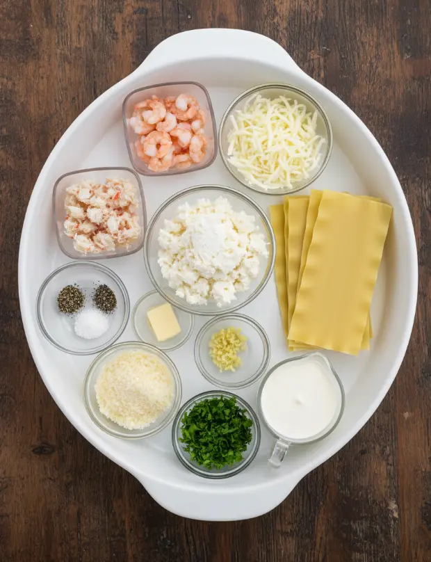 In a bowl, combine 1 cup chopped shrimp, 1 cup lump crab meat, 1 cup ricotta, 1 cup mozzarella, and 2 tablespoons parsley. Mix gently; season with salt and pepper. Tailored Advice: Taste and adjust – fresh lemon zest (1 tsp) brightens for coastal vibes.
