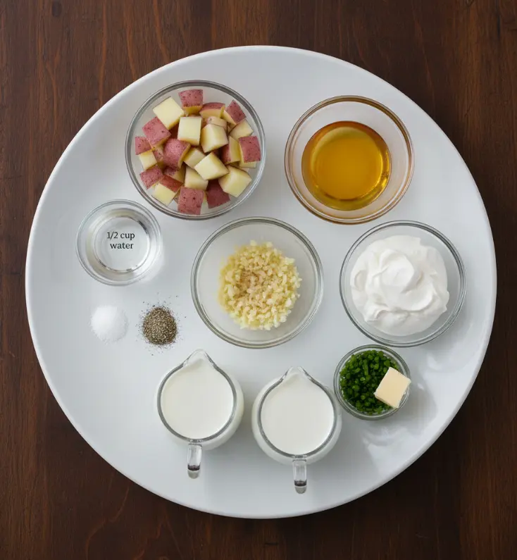 Creating the perfect batch of Slow Cooker Garlic Mashed Potatoes starts with quality ingredients. Here’s what you’ll need for this foolproof recipe that serves 8-10 people: