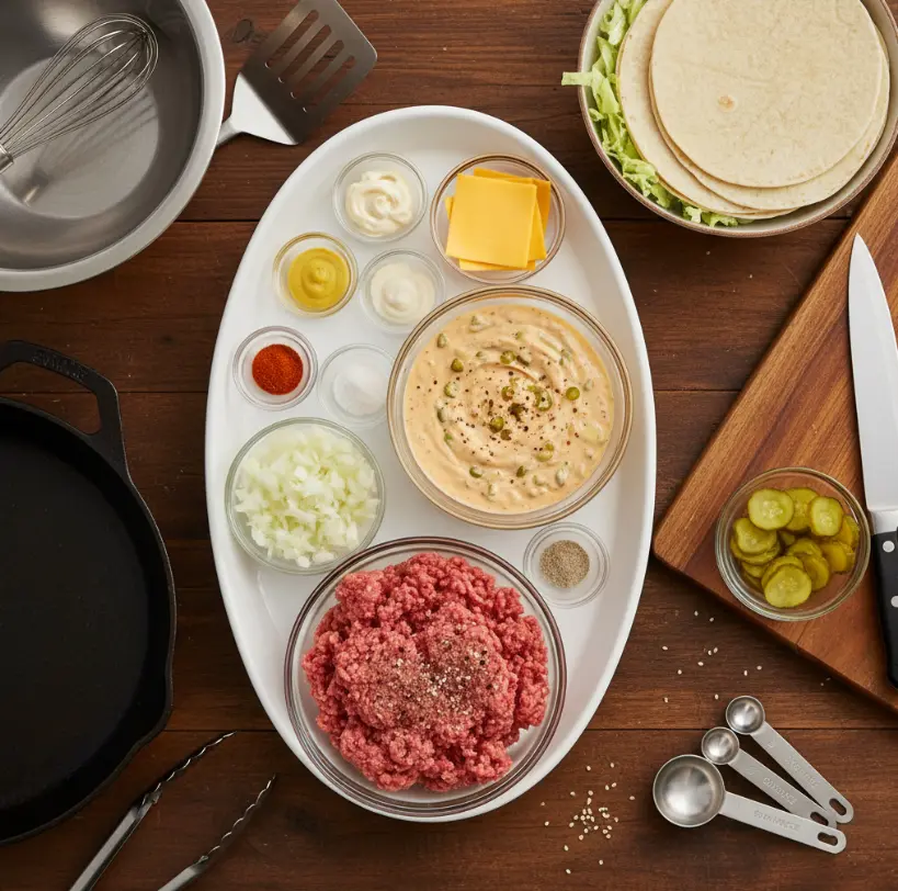 Big Mac Style Smash Burger Tacos combine juicy smash burger patties, melty American cheese, and classic Big Mac sauce inside toasted tortillas. This viral fusion recipe delivers bold, restaurant-style flavor in under 20 minutes and is perfect for weeknight dinners or entertaining.