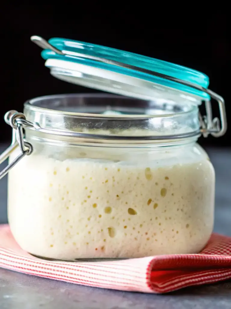 - Day 1: Mix 100g flour, 100g water, and yeast in a non-metal bowl or jar until smooth.