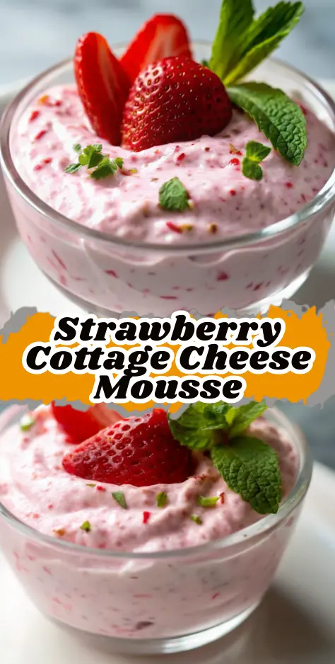 Strawberry Cottage Cheese Mousse is your quick, protein-rich dessert dream: blend cottage cheese, strawberries, and sweetener for fluffiness in 5 minutes. Top and chill for perfection. Try it today, share your twists in the comments or reviews, and subscribe for more healthy recipes!