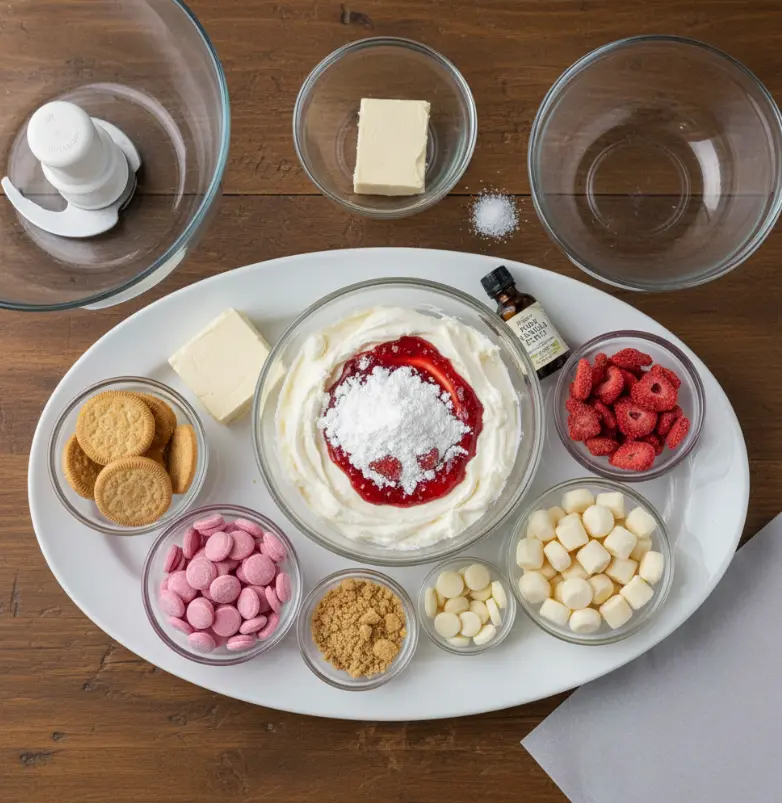 • ¼ cup Freeze-Dried Strawberries – Provides intense strawberry flavor without moisture; fresh strawberries would make the mixture too wet