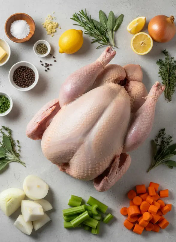 - 1 onion, peeled and quartered (adds aromatic depth to the cavity)