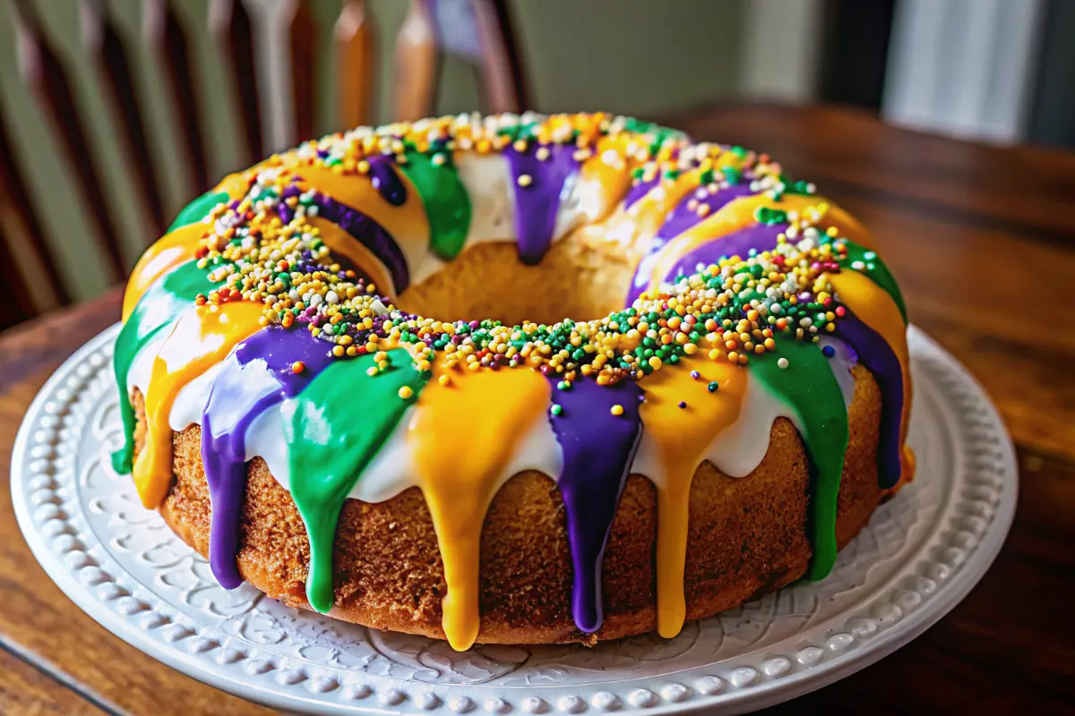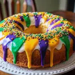 Ce king cake traditionnel est une brioche moelleuse garnie de cannelle et décorée de glaçage aux couleurs emblématiques du Mardi Gras. Une recette authentique inspirée de la tradition de la Nouvelle-Orléans, parfaite pour célébrer l’Épiphanie et le carnaval.