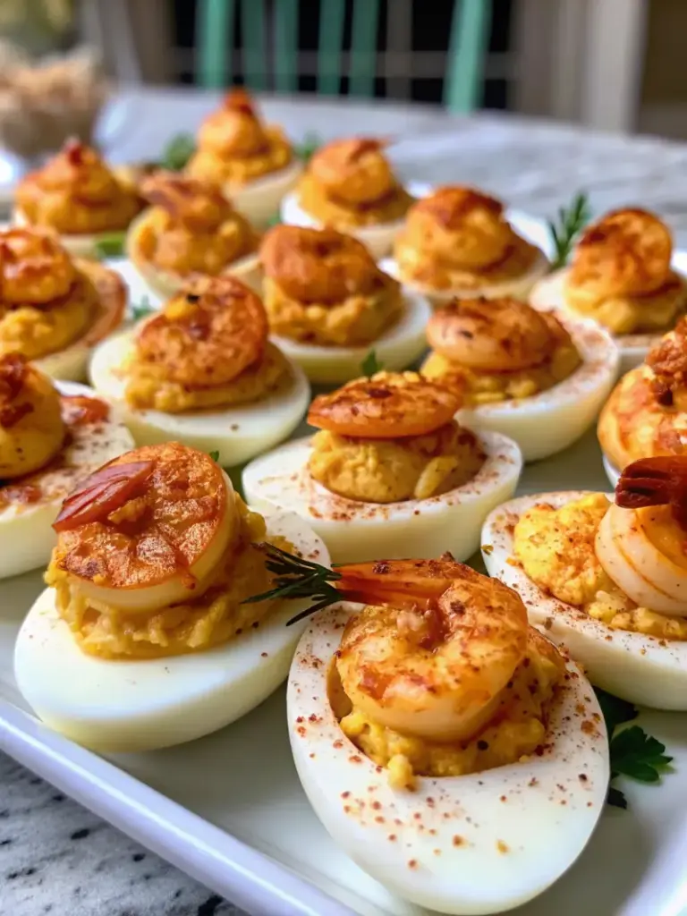 Keywords: cajun shrimp deviled eggs, deviled eggs with shrimp, cajun appetizers, party food