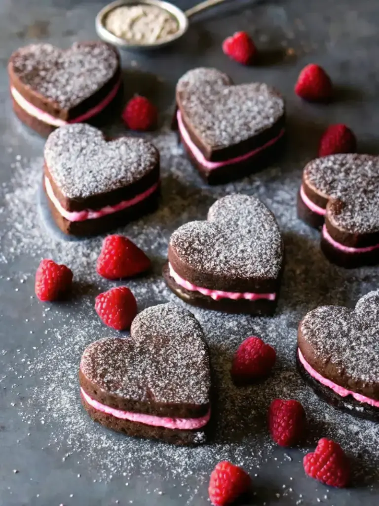 Make-ahead strategy: Prepare brownie bases up to 2 days ahead, covering tightly. Make raspberry reduction 3 days in advance. Assemble frosted hearts no more than 8 hours before serving for optimal frosting texture.