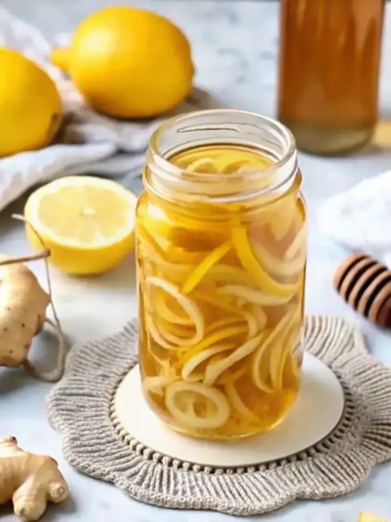 In a clean 1-quart mason jar, layer half the lemon slices and ginger, drizzle half the honey (½ cup), and stir to coat. Repeat with remaining ingredients and stir thoroughly. Engaging note: Watch the honey melt into a glossy elixir—it’s mesmerizing!