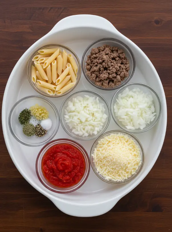 Gather these pantry-friendly ingredients for your penne pasta bake—they yield 6 hearty servings with bold flavors that evoke nonna’s kitchen. I’ve included sensory notes and smart swaps to customize for your taste or diet.