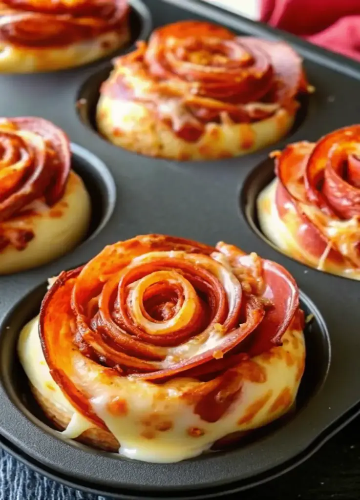 Prepare and assemble pizza roses up to 8 hours in advance. Cover with plastic wrap and refrigerate, then bake just before serving for the freshest possible result.