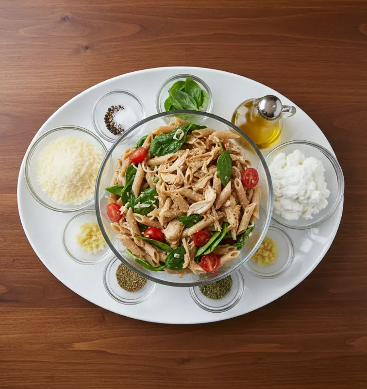 This protein-packed pasta bowl delivers over 30 grams of protein per serving while still satisfying classic comfort food cravings. Made with whole wheat pasta, chicken, cottage cheese, and fresh vegetables, it’s a creamy, balanced, and high-protein meal perfect for busy weeknights or meal prep.
