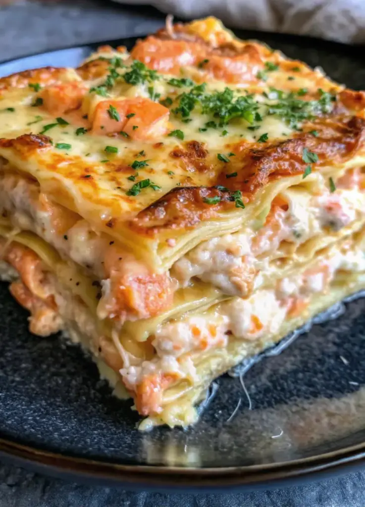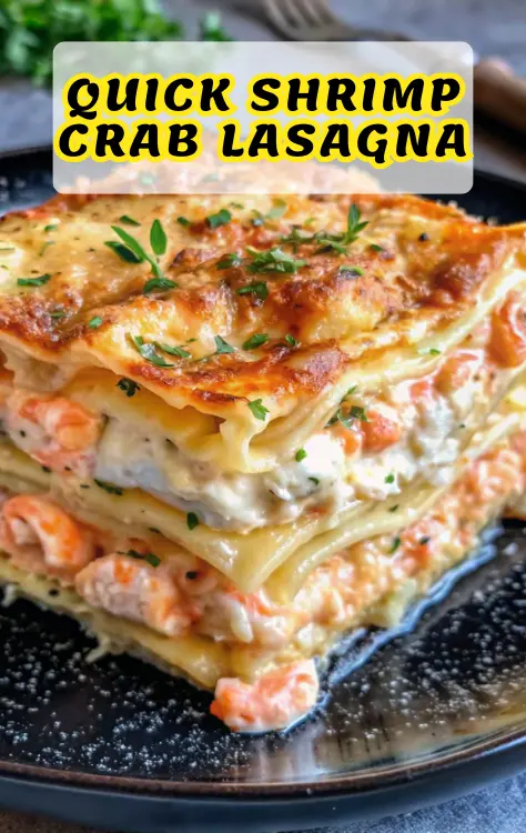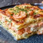 A luxurious seafood lasagna layered with tender shrimp, sweet lump crab, creamy cheeses, and rich Alfredo sauce—an impressive yet surprisingly simple show-stopper for any occasion.