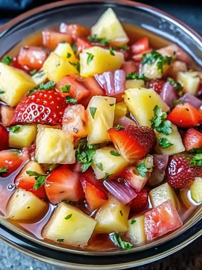 Cette Strawberry Pineapple Salsa fraîche et colorée combine la douceur tropicale de l’ananas et des fraises avec une touche de piquant. Parfaite pour l’été, elle se prépare en quelques minutes et transforme n’importe quel plat en une explosion de saveurs.
