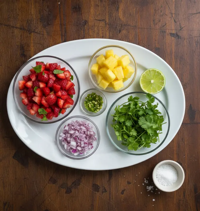 Creating the perfect Strawberry Pineapple Salsa requires fresh, high-quality ingredients that work in harmony. Here’s what you’ll need for an authentic, restaurant-quality result: