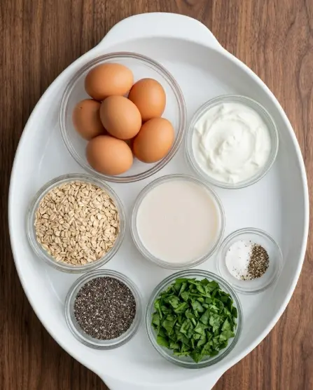 Preheat your oven to 350°F (175°C). Lightly grease an 8×8 or similar baking dish with cooking spray or olive oil. Gather two mixing bowls—one for the egg component and one for the yogurt-oat mixture. This organized mise-en-place makes the entire high protein breakfast meal prep process smooth and enjoyable.