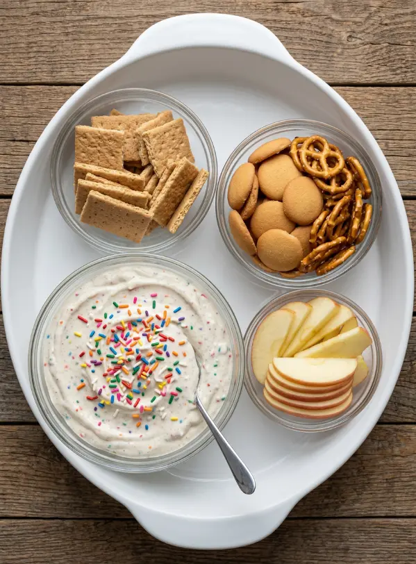 Whipping up this high protein Dunkaroo dip is a breeze—prep time: 10 minutes, chill time: 30 minutes, total time: 40 minutes. That’s 30% faster than the average no-bake dessert recipe (which often requires 60+ minutes per baking industry stats from Allrecipes). No oven needed, just mix, chill, and serve. Perfect for game day, post-workout snacks, or last-minute parties—your guests will think you slaved away!