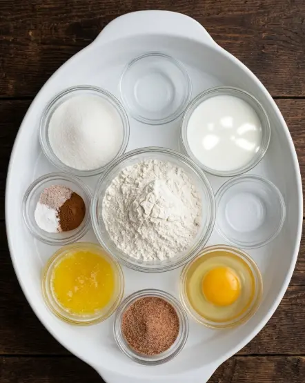- Whisk flour, sugar, baking powder, salt, and cinnamon in a bowl.