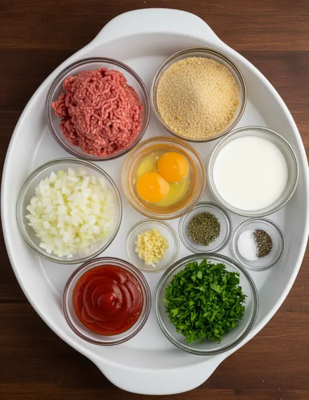Gather these simple pantry staples for your crockpot meatloaf—they create a symphony of juicy, savory flavors that melt in your mouth. This recipe serves 8, perfect for a hearty family meal.