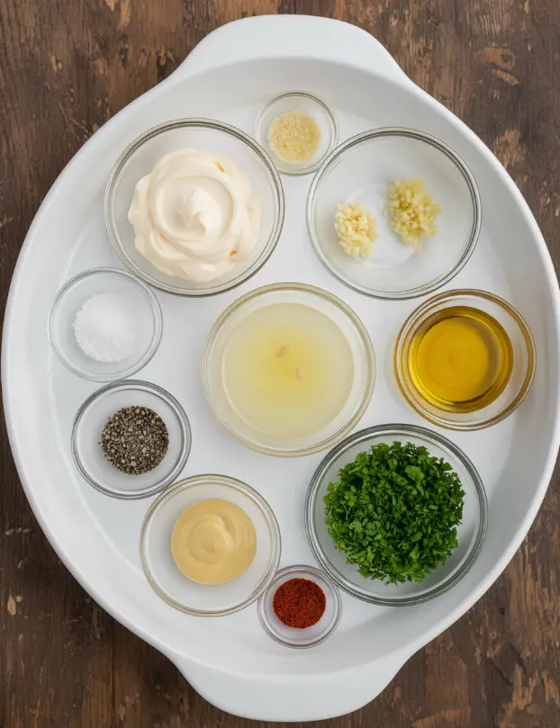 These ingredients create a creamy garlic sauce that’s not just delicious but adaptable—personalize it for vegan diets by swapping mayo with plant-based versions.