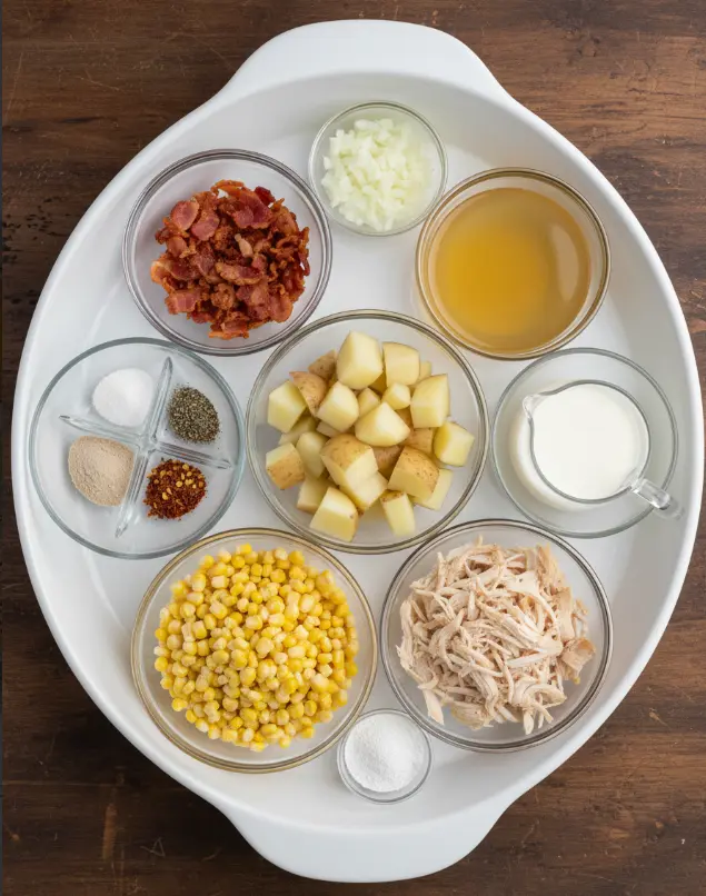 Gather these simple pantry staples for our Snow Day Soup Recipe. This yields 6 hearty servings, evoking the smoky aroma of bacon and the creamy embrace of thickened milk – pure comfort in every spoonful.