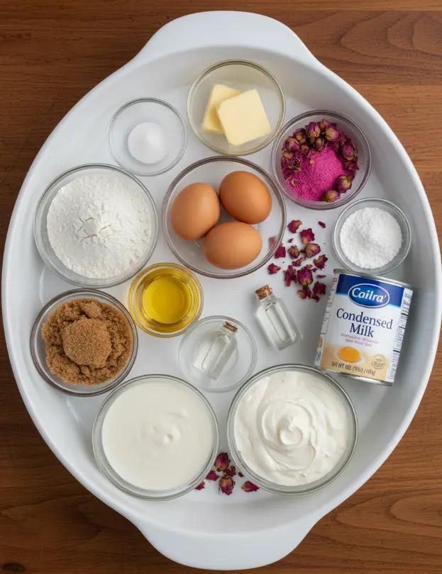 This lineup yields 12 generous servings, blending classic poke cake moisture with rosewater’s sophisticated twist.