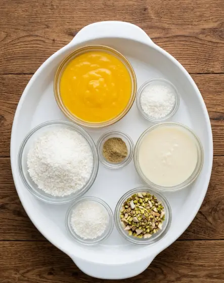 The beauty of this mango ladoo recipe is its short, wholesome ingredient list that delivers maximum flavor with minimal effort. Here’s exactly what you need to make 10 beautiful ladoos: