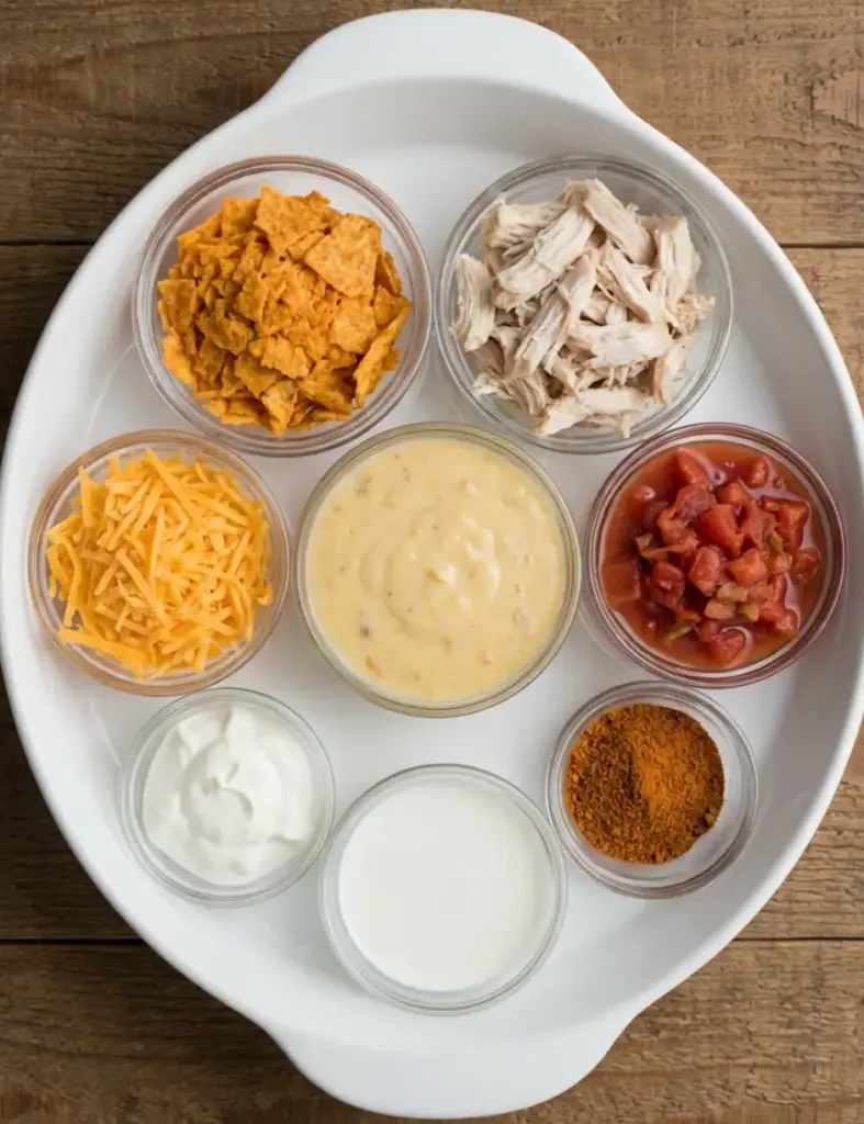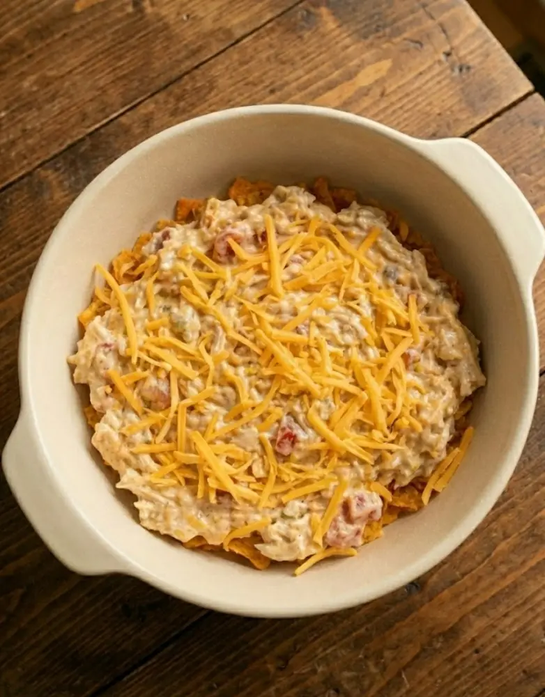 A creamy, crunchy, budget-friendly Mexican White Trash Casserole made with Doritos, seasoned chicken or beef, cheese, and a rich taco-flavored filling—perfect for easy weeknight dinners or potlucks.
