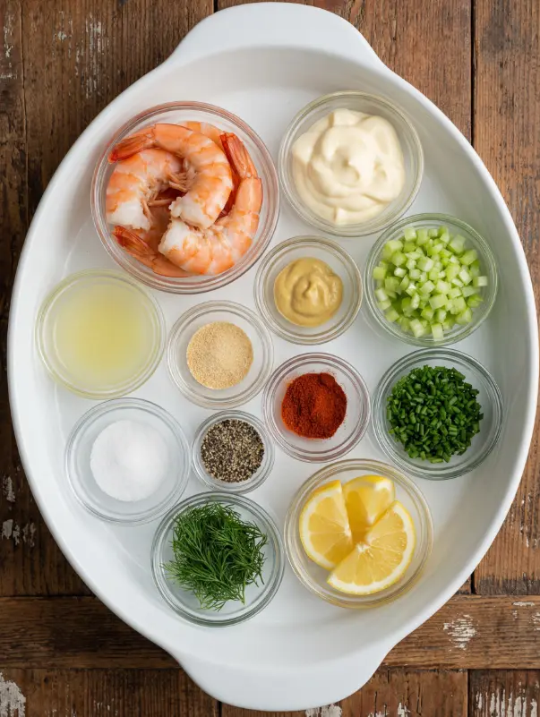Gather these fresh ingredients for your New York Deli Shrimp Salad Recipe—they create a symphony of creamy, crunchy, and zesty notes that evoke the streets of Manhattan. This serves 6 generously, with room for tweaks to suit your pantry.