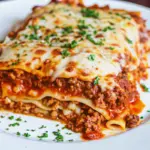 Do not overcook noodles; they’ll continue cooking in the oven. Let lasagna rest before slicing to prevent it from falling apart. If sauce is watery, simmer longer until thickened.