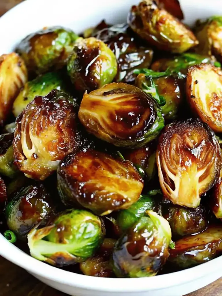 - Finish & Serve: Drizzle glaze over roasted Brussels sprouts, toss gently, and serve hot. Garnish with red pepper flakes if desired.