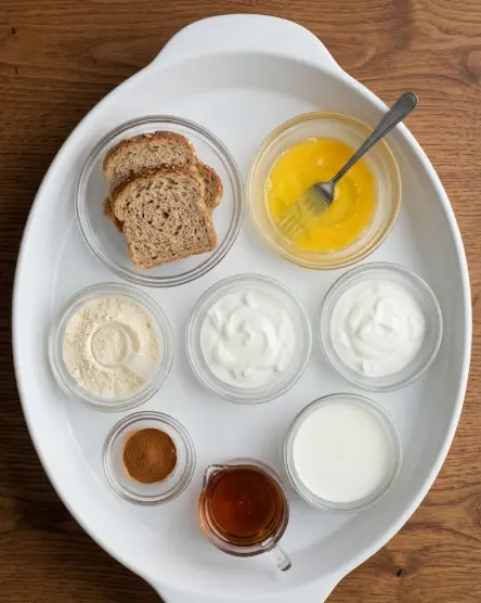 In a wide shallow bowl, whisk egg + Greek yogurt + cinnamon + vanilla + salt until smooth.