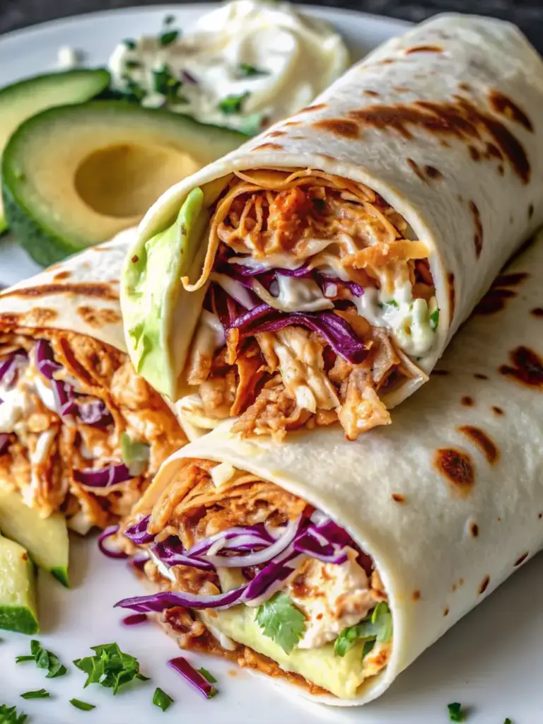 A: While you can prepare the chicken and coleslaw components 1-2 days in advance, it’s recommended to assemble wraps just before serving to prevent the coleslaw from becoming watery. Store components separately and assemble when ready to eat.