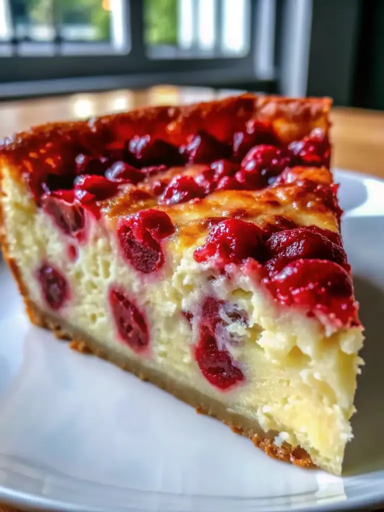 Gently pour the batter over the cherries—it’ll bubble up invitingly. Bake 45-55 minutes until puffed, golden, and set in the center (a toothpick should come out clean-ish, with cherry bits). Rotate midway for even browning—your kitchen will smell like a French patisserie!