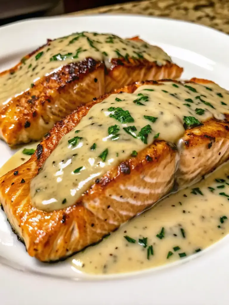 Return salmon to the skillet, spoon sauce over top, and simmer 1 minute. Garnish with fresh parsley. Engaging Twist: Plate immediately for peak creaminess—your kitchen will smell like a five-star bistro!