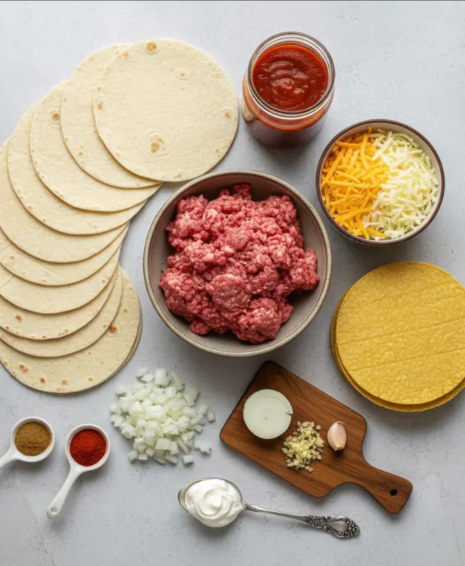 Preheat your oven to 375°F (190°C) and lightly grease a 9×13-inch baking dish. This temperature ensures perfect cheese melting without overcooking the tortillas.