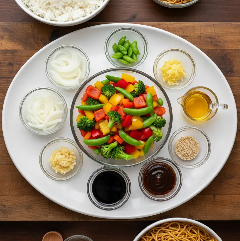 Creating the perfect Vegetable Stir Fry starts with selecting the right combination of fresh, crisp vegetables and a balanced sauce that brings everything together. Here’s what you’ll need for a restaurant-quality dish at home: