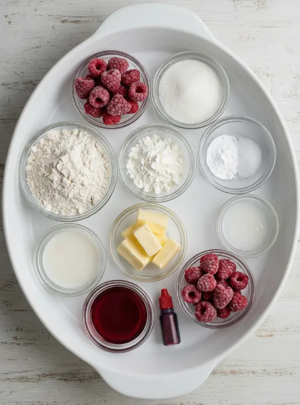 - 1/2 cup frozen raspberries, chopped: Folded in for juicy bursts—use fresh if in season for extra zing.