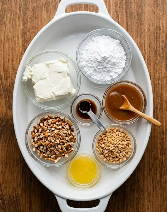 • 2 cups pretzels, crushed: The essential salty crunch. Substitution Tip: Gluten-free pretzels work beautifully, or for a different texture, crushed graham crackers or shortbread cookies can be used (though you’ll lose the salty element).