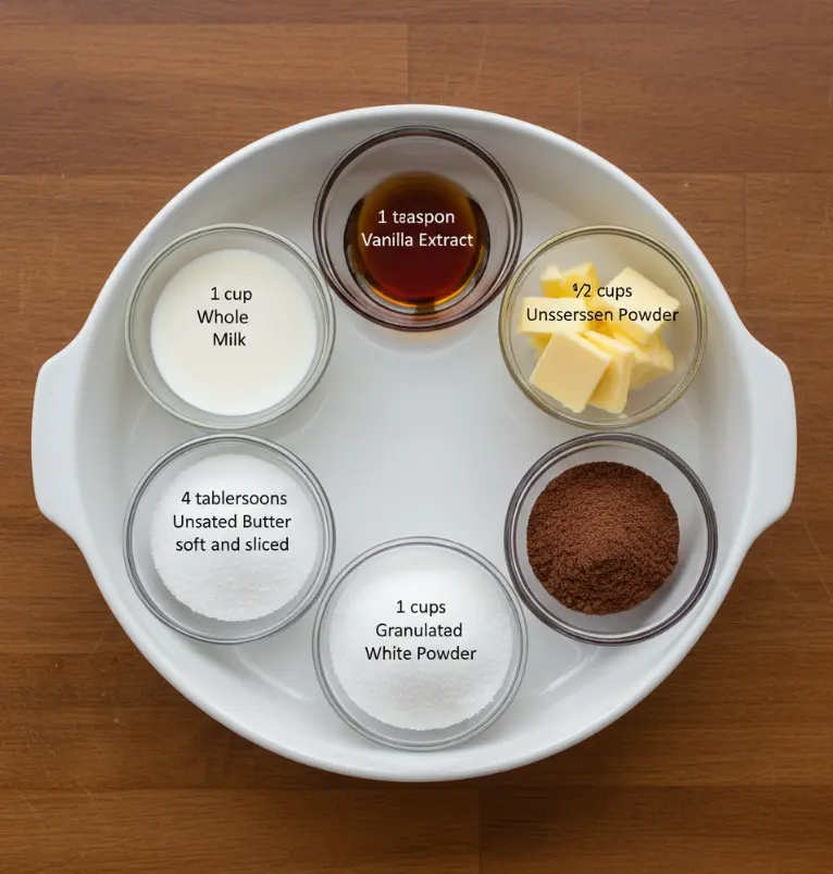 - Combine sugar and cocoa powder in a saucepan, then stir in whole milk until smooth.