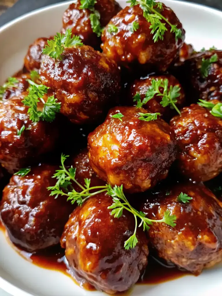 Sprinkle fresh chopped parsley over your honey BBQ meatballs just before serving. Not only does this add visual sophistication and color contrast, but it also provides a fresh herbal note that balances the rich sweetness of the glaze. Serve warm with toothpicks for easy grabbing at parties.