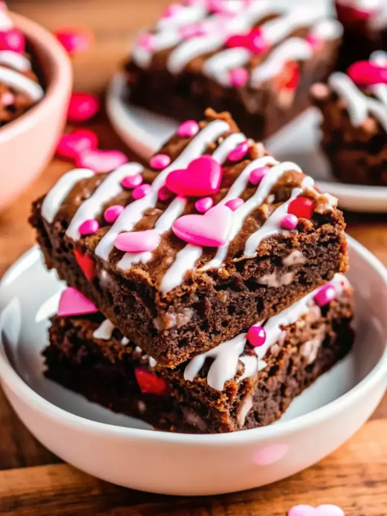 Decadent, love-infused Valentine Brownies with a rich fudgy texture, perfect for creating unforgettable moments with every chocolate-filled bite.
