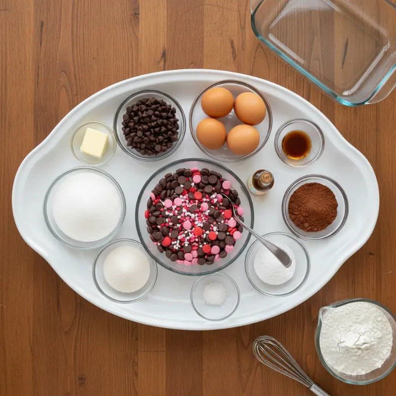 Creating perfect Valentine Brownies starts with quality ingredients that work in harmony to deliver that irresistible fudgy texture with a delicate crumb. Here’s what you’ll need for this show-stopping recipe: