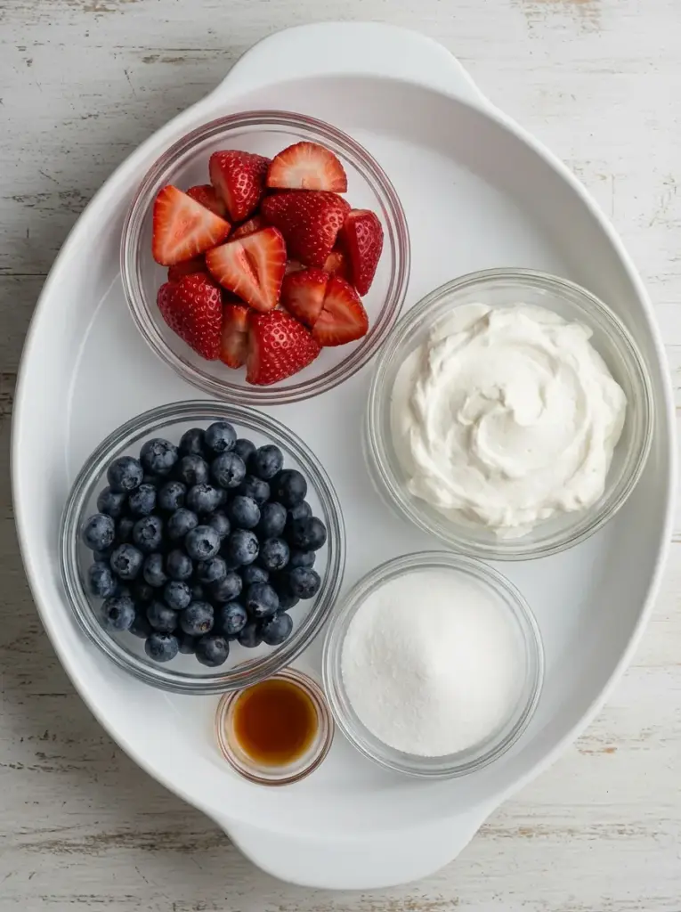 Gather these fresh, vibrant ingredients for a spring dessert that serves 4 (about 1 cup per serving). I’ve included sensory notes and smart substitutions to keep things exciting and accessible: