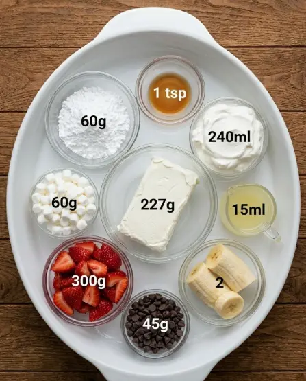 Strawberry Banana Cheesecake Salad Ingredients (Serves 6–8 — double it, seriously)