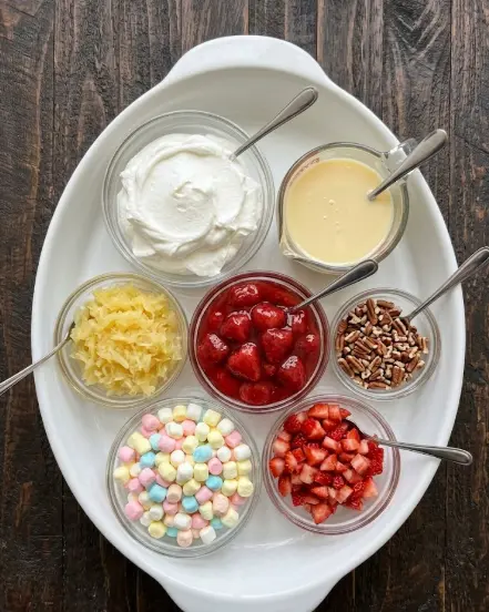 Strawberry Fluff Ingredients (Serves 10–12 — double it, seriously)
