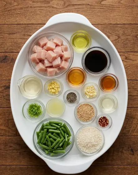 Cube the 567 g chicken into uniform 1-inch pieces so they cook evenly. Mince the garlic, grate the ginger, zest and juice the lime, and trim the green beans. Whisk together the sauce ingredients (coconut aminos, honey, sesame oil, rice vinegar, black pepper, lime zest, lime juice, and red pepper flakes) in a small bowl so it’s ready to pour.