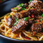 A restaurant-quality fusion pasta combining tender seared steak, bold garlic, sweet heat, and umami-rich sauce—ready in just 30 minutes and perfect for weeknight dinners.