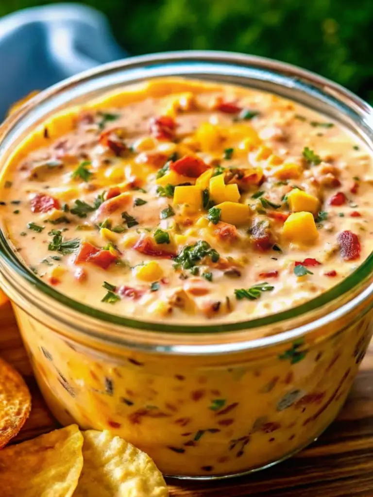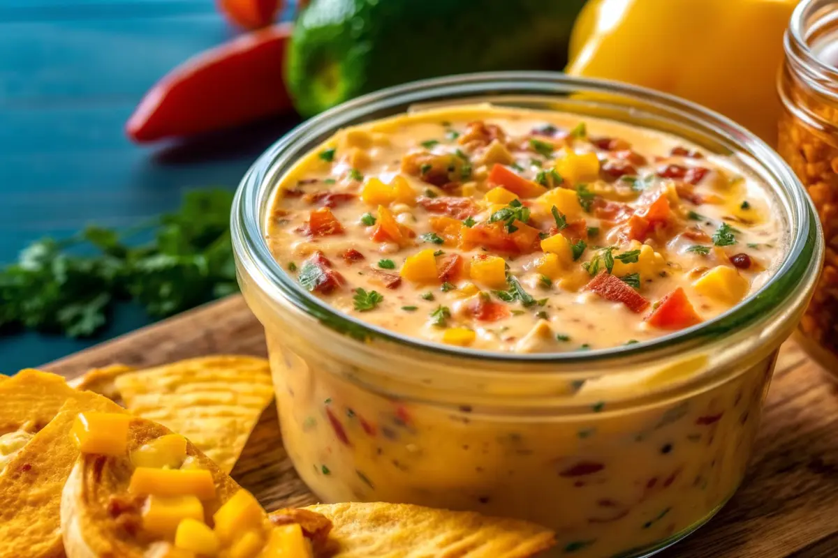 - Serve: Stir gently before serving. Enjoy with tortilla chips, crackers, or fresh vegetables.