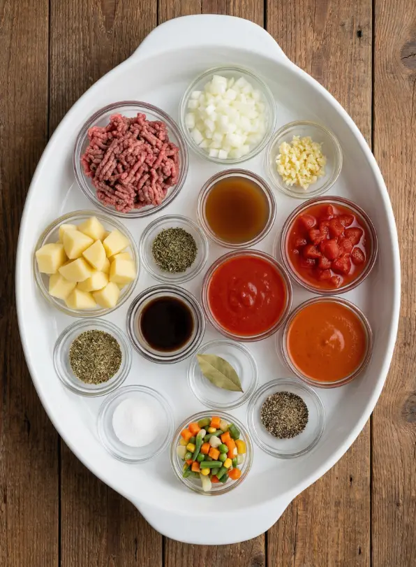 Gather these simple pantry staples for your vegetable ground beef soup – most are everyday items that create a symphony of savory, earthy, and slightly tangy notes. This recipe serves 6-8 generously, perfect for family dinners or leftovers.